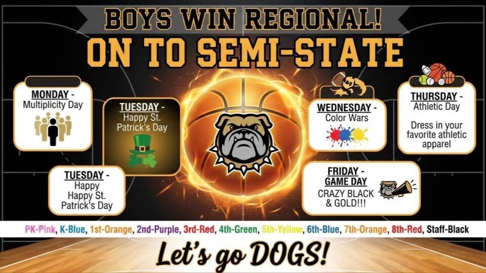 Congratulations to the Boys BB Team for winning Regional!Let's continue showing our Bulldog Pride by supporting the boys as they advanceto Semi-State this Saturday!To help celebrate and show our sp...